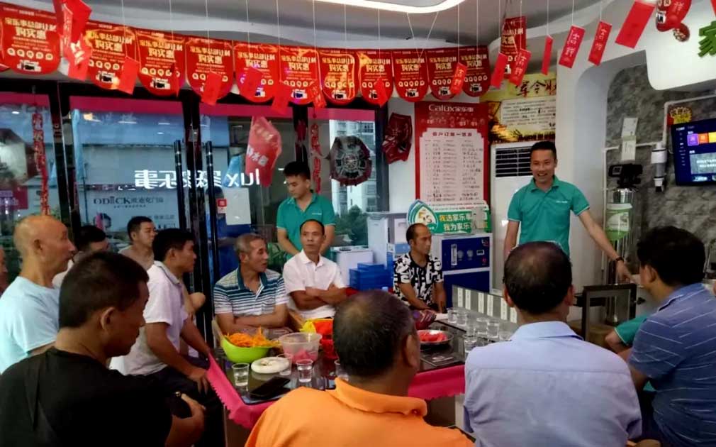 管理的核心在于人,銷售的核心還是在于人。與這些客戶對接中,我們發(fā)現(xiàn),那些敢訂貨、能賣貨的分銷商,都是對凈水比較熟悉、又有銷售經(jīng)驗(yàn)和方法的客戶。家樂事樣板打造特戰(zhàn)隊(duì),另一個核心作用就在于對店員及店長在產(chǎn)品知識和銷售技巧等方面的培訓(xùn),增強(qiáng)他們對產(chǎn)品的熟悉度。同時,銷售技巧的增加,也讓更好的服務(wù)客戶。讓代理商及店員對凈水器這個東西,不恐懼,敢介紹,敢賣貨。