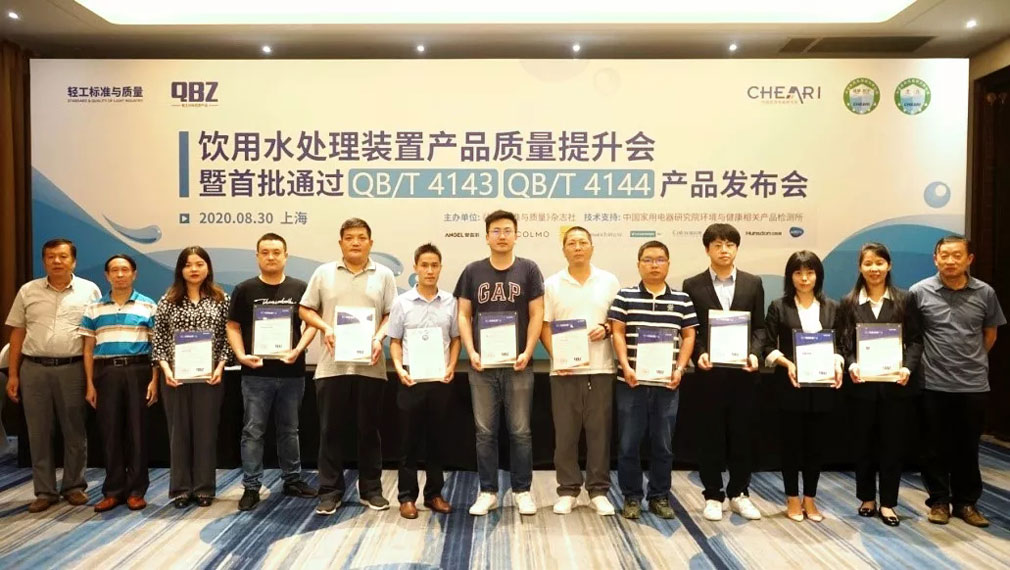 2020年8月30日,在第十三屆上海國際水展開幕前夕,由《輕工標(biāo)準(zhǔn)與質(zhì)量》主辦的“飲用水處理裝置產(chǎn)品質(zhì)量提升會(huì)暨首批通過QB/T 4143、QB/T 4144產(chǎn)品發(fā)布會(huì)”于上海舉行。
