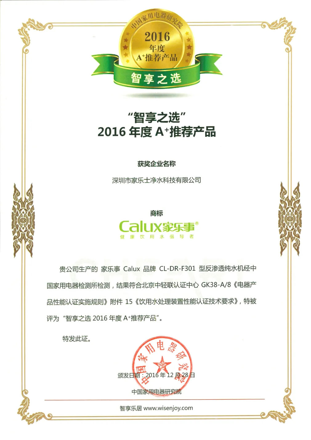 經(jīng)過業(yè)內(nèi)相關(guān)人員近10年的持續(xù)努力,修訂后的QB/T 4143-2019《家用和類似用途一般水質(zhì)處理器》、QB/T 4144-2019《家用和類似用途純凈水處理器》終于在2020年1月1日實(shí)施。而家樂事F301成了2020年初這新標(biāo)準(zhǔn)實(shí)施后,首批通過新標(biāo)準(zhǔn)的凈水器產(chǎn)品。