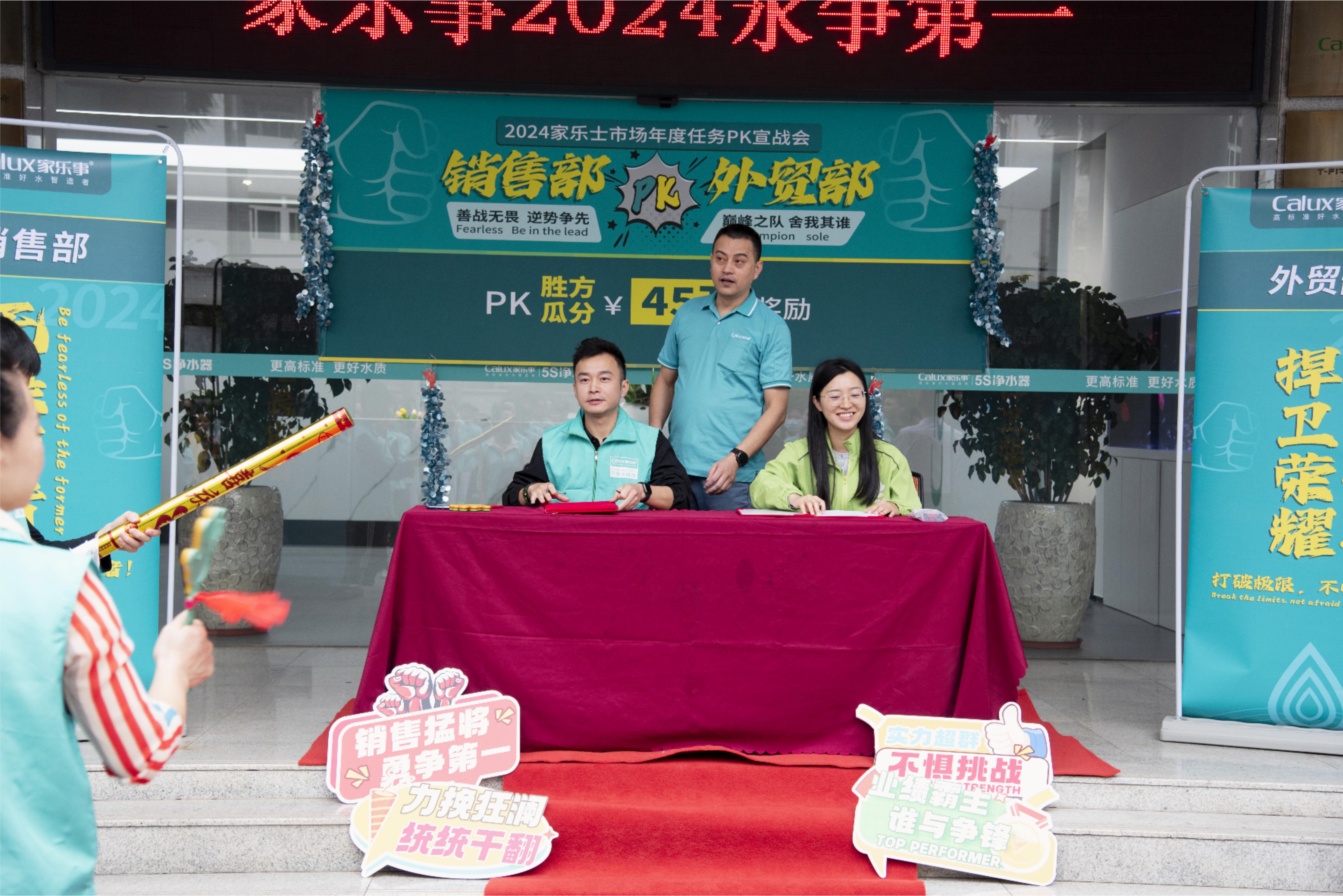 有貢獻(xiàn)奮斗才有獲得和成長(zhǎng)!同時(shí),為進(jìn)一步激發(fā)員工責(zé)任和擔(dān)當(dāng),公司將在2024年拿出首筆豐厚PK激勵(lì)獎(jiǎng)金,在當(dāng)天大會(huì)現(xiàn)場(chǎng)進(jìn)行了2024年家樂士“首場(chǎng)--市場(chǎng)年度任務(wù)挑戰(zhàn)PK”宣誓發(fā)布,為來年2024年積發(fā)力量預(yù)熱和信心籌謀。